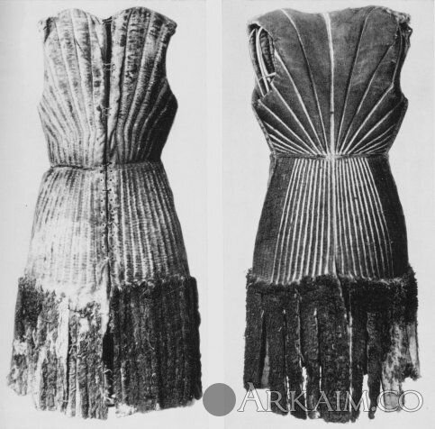 Стёганная одежда ( гамбезон) около 1450года . Было найдено 3 подобных одеяния. Одно имело отделку мехом в нижней части , но из-за перевозок между музеями во время второй мировой войны меховая часть была утеряна и осталось только чёрно-белое довоенное фото . (Arming jacket, 1440-60, Holstentor Museum, Lübeck) (фото 8)