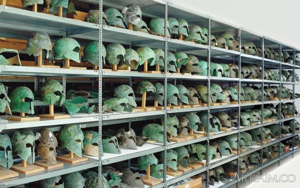 Коринфские шлемы, 6-5 вв. до н.э. Хранилище музея в Олимпии