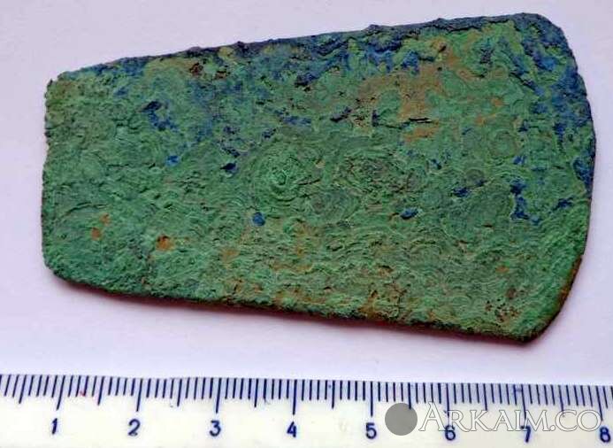 Топор-тесло, средняя бронза. Длина 75 мм, ширина в широкой части 45 мм, в узкой 27 мм, вес 64 гр. Крым