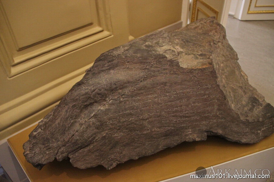 Камень с арабской и уйгурской надписью о победе Тимура над золотоордынским ханом Тохтамышем в 1391 г. Казахстан, Карасакпай.