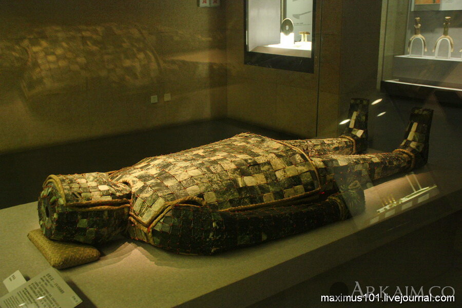 Одеяние князя Лян выполнено из 2008 пластинок нефрита, скрепленных золотой проволокой. Древние китайцы верили, что нефрит обладает многими магическими свойствами, в том числе, спасает тело от разложения. В итоге, останки князя исчезли, а его нефритовый скафандр полностью сохранился.