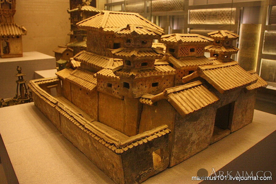 Китайцы в свои гробницы укладывали не только терракотовых воинов, но и модели жилых домов и целых поместий. Именно по этим макетам можно узнать об архитектуре эпохи Хань, так как ни одного реального сооружения тех лет до нас не дошло.