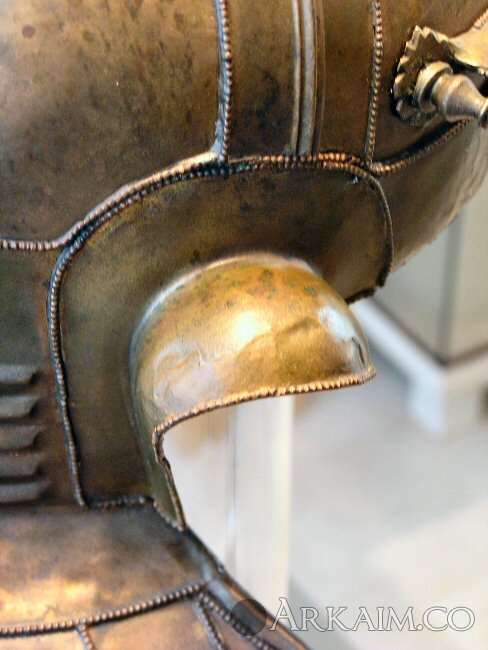 Бронзовый римский шлем из города Niedermörmter - недалеко от Xanten, Германия. На передней части лба имеется надпись: "LEG XXX VLP VIC L SOLLIONI SUPERI". Тип: Imperial Italic H, 3 в. Музей Bonn (фото 1)