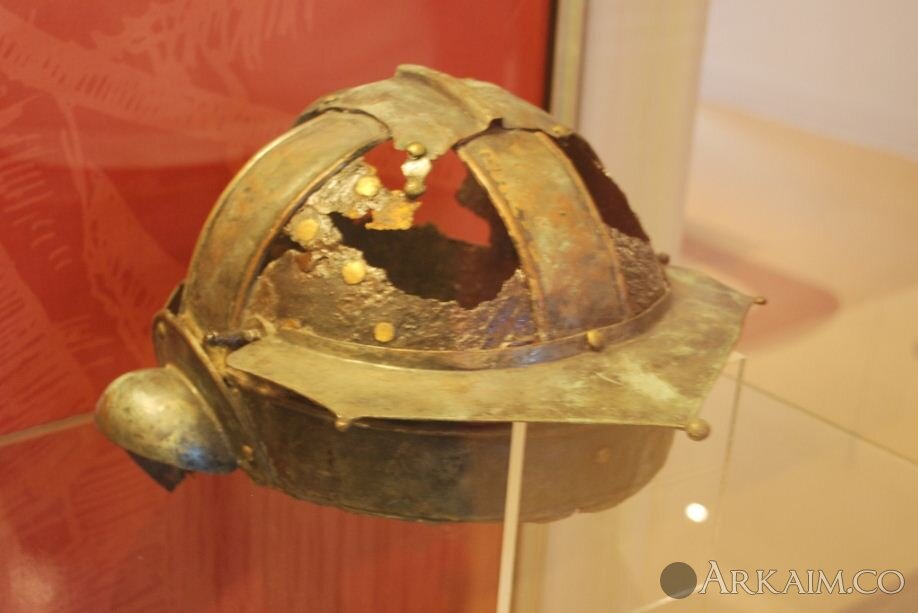 Римский шлем из музея Wijk bij Duurstede, Нидерланды. Купол шлема железный, две верхние пластины крестом и декоративные элементы - из медного сплава. Тип: Imperial Italic H, предположительно 3 в. н.э. (фото 2)