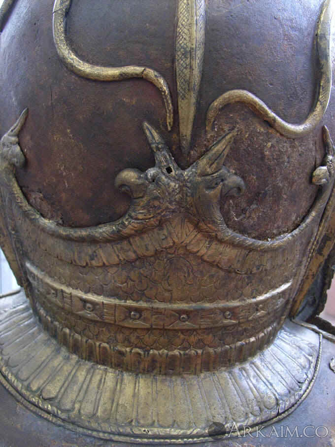 Железный шлем с бронзовыми украшениями (змеи). Найден в 1883 г. и лишь недавно восстановленный, в Heddernheim недалеко от Франкфурта, Германия.