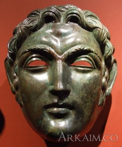 Одна из пяти бронзовых римских масок, найденных в 3 км от крепости города Straubing в 1950 г.