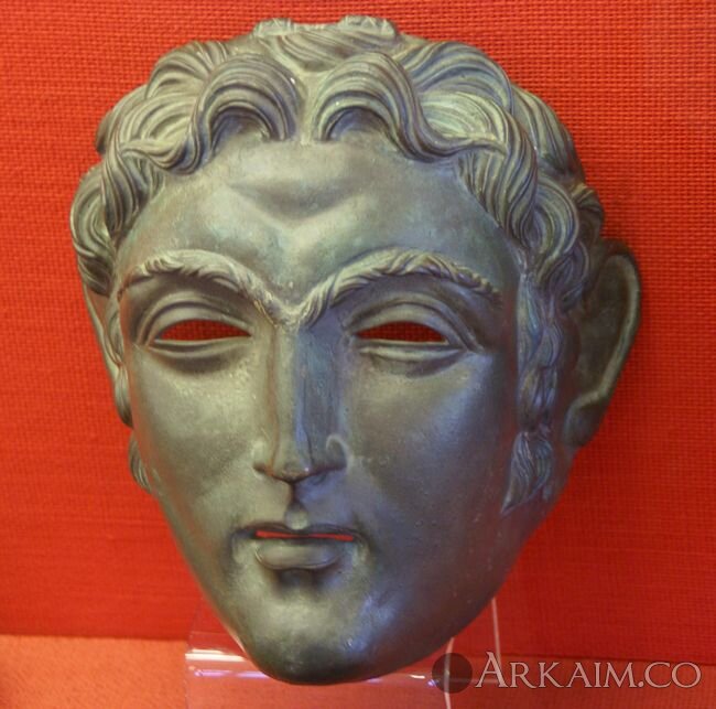 Одна из пяти бронзовых римских масок, найденных в 3 км от крепости города Straubing в 1950 г.