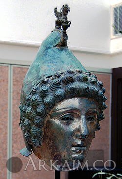 Yorik 88 Опубликовано 6 января, 2016 Шлем Кросби-Гаррет Шлем Кросби-Гаррет в выставочном зале Кристис во время торгов Вид сбоку Шлем Кросби-Гаррет (англ. Crosby Garrett Helmet) — древнеримский шлем, изготовленный из медного сплава примерно в I-III веке нашей эры. Шлем был найден в мае 2010 года частным лицом при помощи металлодетектора в районе Кросби-Гаррет в Камбрии, Англия. Как предполагается, шлем не имел боевого предназначения и использовался для различных церемоний; подобный шлем является третьим найденным в Великобритании. 7 октября 2010 года шлем Кросби-Гаррет был продан с аукциона Кристис за 2,3 млн фунтов стерлингов (3,6 млн долларов) анонимному покупателю по телефону. Находка Шлем был найден частным искателем, пожелавшим остаться неизвестным, при помощи металлодетектора на территории пастбища фермы, принадлежащей Эрику Робинсону, в районе Кросби-Гаррет. О расположении каких-либо древнеримских поселений или лагерей в районе находки неизвестно, однако рядом проходит древняя римская дорога, ведущая к северным границам римской Британии. Дорога имела стратегическое значение, и предполагается значительное древнеримское военное присутствие и перемещение военных сил в районе находки. Находка состояла из 33 крупных и 34 мелких фрагментов, вероятнее всего, шлем был завёрнут в материю и помещён лицевым щитком вниз. Поскольку в районе находки никаких римских поселений не известно, предполагается, что шлем был закопан в момент опасности, угрожавшей владельцу. В местности, где был найден шлем, возможно, будут произведены более тщательные археологические исследования. Описание За время нахождения в земле шлем разрушился и при находке состоял из 67 различных осколков. Реставраторы, нанятые аукционным домом Кристи, восстановили его в прежнем виде. Поскольку реставрация проходила до того, как шлем был направлен на научную экспертизу в Британский музей, возможно, была утрачена важная информация о происхождении данного шлема. На некоторых фрагментах шлема находятся следы белого металла, что позволяет сделать вывод о том, что весь шлем был покрыт белым металлом «под серебро». После реставрации шлем представляет из себя типичный, состоящий из двух частей, церемониальный доспех римского кавалериста, какие использовались во время турниров, известных как «hippika gymnasia». Маска (лицевая часть) представляет собой греческого юношу с вьющимися волосами, одетого во фригийский колпак. В верхней части шлема помещён крылатый сфинкс, что является необычным для таких шлемов. Предполагается, что, возможно, маска и шлем представляют бога Митру, популярного среди древнеримских воинов в I—IV вв. н. э. Собственность и продажа В процессе торгов Шлем, найденный в Кросби-Гаррет, является весьма ценной как с исторической, так и с финансовой точки зрения находкой, которая была целенаправленно помещена в землю и в обывательском понимании, несомненно, является кладом. Однако даже по английскому законодательству в этой области, считающемуся одними из наиболее проработанных в мире, кладом в юридическом смысле он признан не был, поскольку предметы из бронзы признаются таковым только в цельном, не повреждённом виде, в отличие от предметов из серебра или золота и вне зависимости от своей исторической ценности. Если бы шлем официально был признан кладом, то была бы запущена долгая бюр