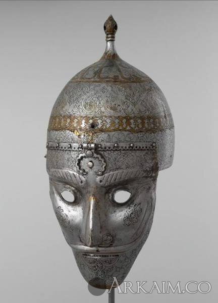 Шлем с маской. Иран, XVI в. Сталь. Гравировка, ковка, золочение