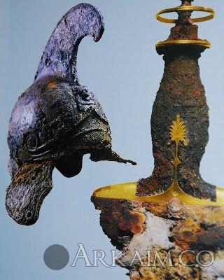 Шлем и рукоять меча из гробницы в Эги (захоронение Филиппа II Македонского?) (фото 1)