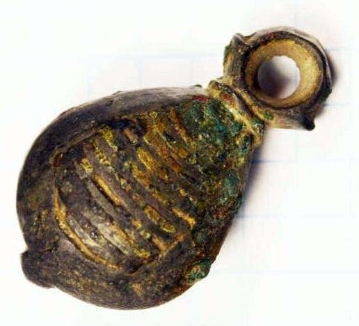 Кистень грушевидный уплощенный с черневым орнаментом, тип 3 по Кирпичникову, вторая половина 12 - 13 вв. Житомирская обл.