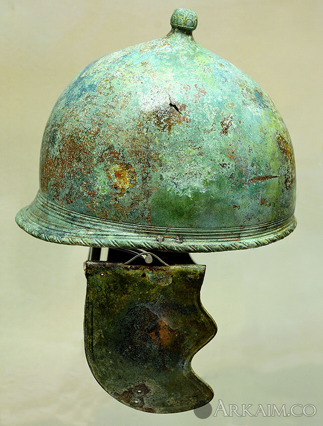 Римский бронзовый шлем, тип «Монтефортино А», середина IV — середина III вв. до н. э. Найден в некрополе Беначчи близ Болоньи, Италия. Болонья, Городской археологический музей.