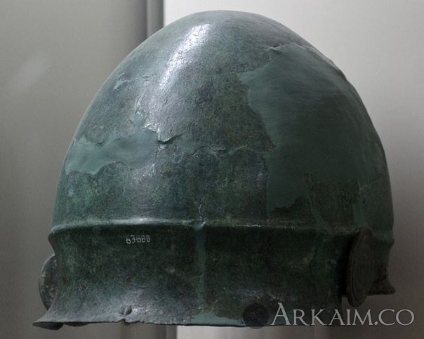Бронзовый шлем из Могилы Воина (Могила XLVII), 530-510 гг. до н.э., Остерия Некрополиса, раскопки Менгарелли