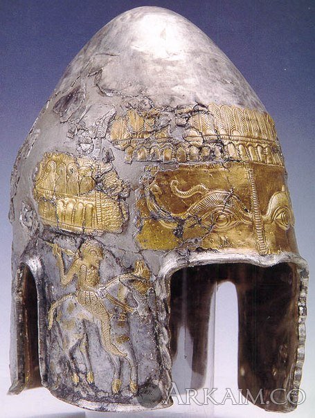 Шлем серебряный с позолотой, V в. до н.э. Сокровища Agighiol, Национальный музей истории, Бухарест (фото 3)