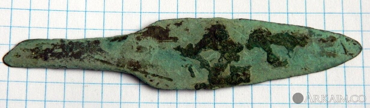 Бронзовый черешковый нож эпохи ранней-средней бронзы. Бытовал у племен позднеямной и катакомбной культур юга современной Украины. Примерно 23-18 вв. до н.э.