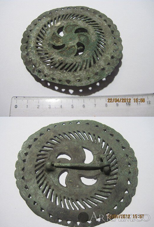 Фибула 4-6 век Колесо велиса , белая эмаль в центре утрачена.