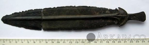 Кинжал типа "Красный маяк" вариант Мариновка, сабатиновская группа, поздняя бронза, 16-12 вв. до н.э. Длина 245 мм, вес 133 гр. Найден визуально на берегу Каховского водохранилища (правый берег).