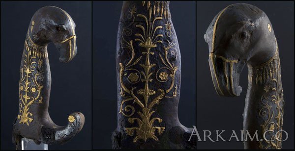 Yorik 88 Опубликовано 4 февраля, 2016 В потайной камере кургана "Kosmatka" недалеко от города Шипка, археолог Георгий Китов в 2004 году нашёл погребение фракийского правителя IV в до н.э. В погребальной камере кургана лежала бронзовая голова Севфа, части меча с золотой рукояткой, красивые наколенники, конское убранство с золотой отделкой и венок из золотых дубовых листьев - знак того, что усопший был из правящего рода. Затем подняли шлем с надписью - "Севф". Севф, правитель, кто осмелился выступить против империи Александра Македонского после его смерти, т.е участвовал в разборках диадохов. Меч был в третьей камере кургана. Вместе с золотым венком. На Свефте была золотая гривна и он был прикрыт золотой тканью. Считается, что ритуально убит мечом. Это 61-дюймовый меч с рукояткой в виде головы грифона. По-видимому это ритуальный или церемониальный меч.