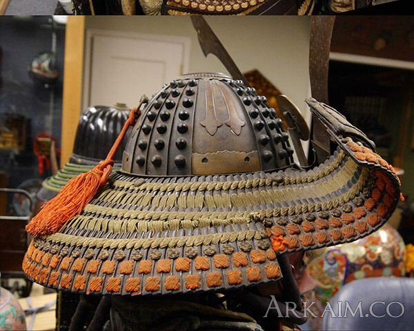 Кабуто вид сбоку. Хорошо видны выпуклые «котелки», закрывающие заклепки