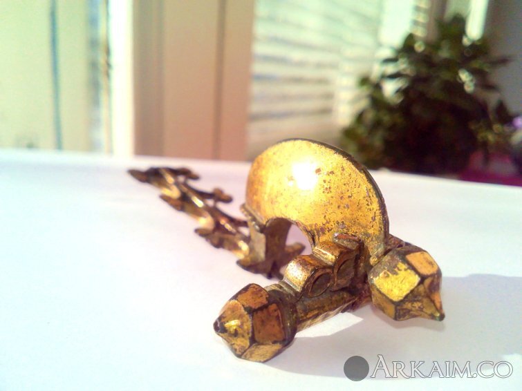 Позднеримская фибула, т.н. «луковичная» - нем. Zwiebelknopffibel (названа из-за кнопок в форме луковицы). Вариант 6 (в основном 5 век) по типологии Келлера – Прётеля. В системе Амброза – Т-образные шарнирные. Регион Рубежное-Кудряшовка-Варваровка, Луганская обл. (фото 1)