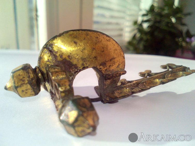 Позднеримская фибула, т.н. «луковичная» - нем. Zwiebelknopffibel (названа из-за кнопок в форме луковицы). Вариант 6 (в основном 5 век) по типологии Келлера – Прётеля. В системе Амброза – Т-образные шарнирные. Регион Рубежное-Кудряшовка-Варваровка, Луганская обл. (фото 2)