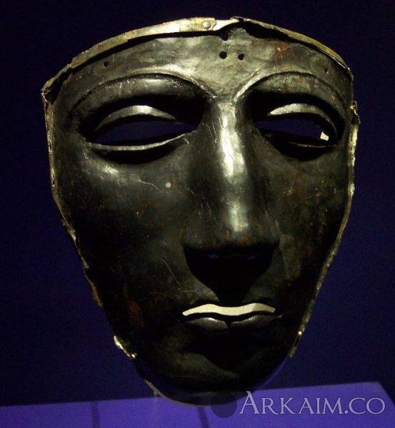 Парадная маска. Железо с серебряным покрытием. Принадлежала римскому всаднику, найдена на месте битвы.