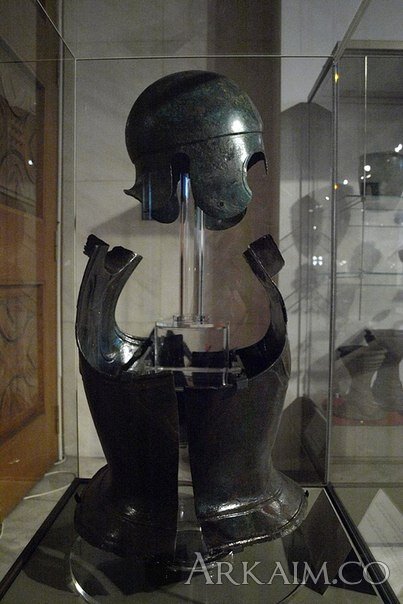 Фракийские доспехи V-IV века до нашей эры., обнаруженные недалеко от деревни Бегово у Пловдива и бронзовый шлем V-IV вв. До н., найденный в кургане в окрестностях города Шипка (фото 1)