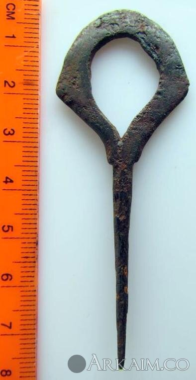Плоский грушевидной формы с вырезом, тип 64 по Медведеву, 11-13 вв.