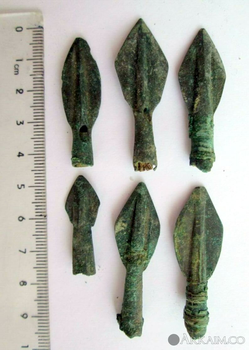 Киммерийские наконечники новочеркасского типа с остатками обмотки на втулке и древками. Северный Кавказ