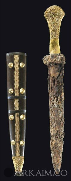 Греческий железный кинжал инкрустированный золотом и серебром. Эллинистический период около 3-го 2-го века до н.э.