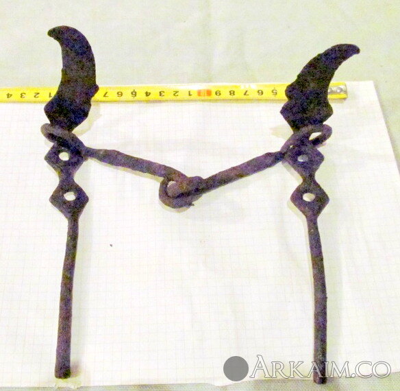 Скифские псалии и двухдырчатые удила выполненные в форме голов хищной птицы, железо.Северный Кавказ