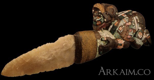 Ацтеки. Нож для жертвоприношения (1400-1521).Дерево, бирюза, ракушки, халцедон.Длина 31,7 см, ширина 6,3 см. Лондон, Британский музей