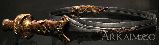 Ритуально изогнутый меч кельтского вождя, железо с золотой инкрустацией, 700 год до н.э. Захоронения в ПСОК, южные Нидерланды (фото 1)