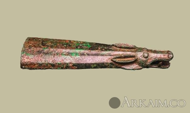 Наконечник ножен меча с головой волка. Бронза. V в до н.э. Станица Старокорсунская, 1979