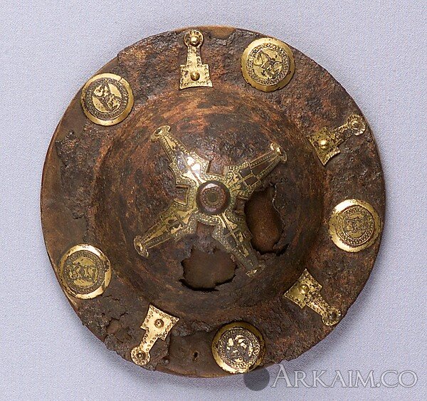Умбон щита, 17,78х8,89 см, кон. 6 - сер. 8 вв., найден в Лонгобардии, Северная Италия. Метрополитен-музей, Нью-Йорк