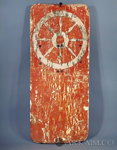 Щит украшен гербом города Эрфурт, серебряное колесо на красном поле, и, возможно, был сделан до 1324 года, когда был изменен герб города.