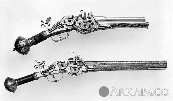 Двухствольные колесцовые пистоли, 1580 г. Аугсбург, Германия. Метрополитен-музей, Нью-Йорк