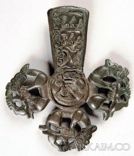 Поясная привеска. VII-VI века до н.э. Прикамье. Ананьинская культура. Три хищника терзают своих жертв. Скифский звериный стиль.