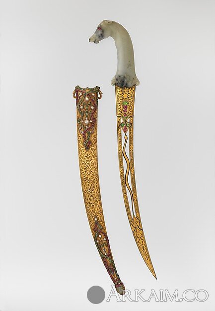Кинжал с ножнами, индийская рукоять - 17-18 вв., турецкие лезвие и ножны - 19 в. Метрополитен-музей, Нью-Йорк