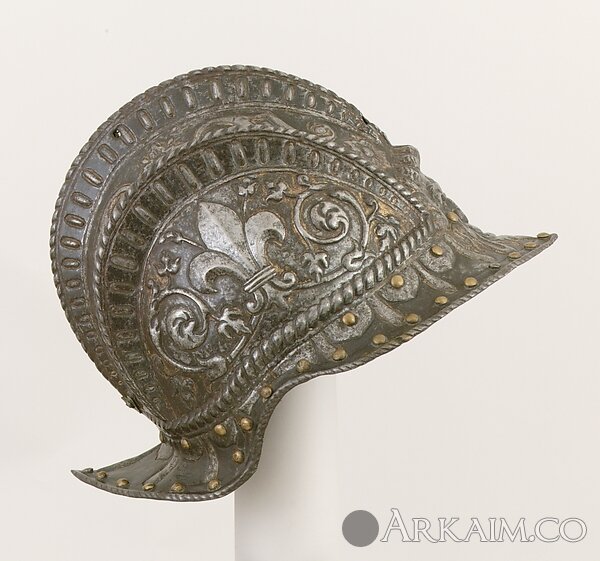 Этот шлем является одним из серии которая была сделана для охраны Пьера Луиджи Фарнезе (1503-1547), который правил, как герцог Пармы и Пьяченцы от 1545 до 1547 г.