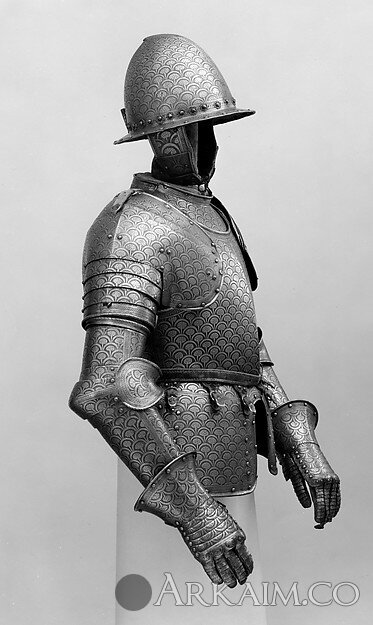 Тяжелый доспех, ок. 1600 г. (нащечники и пальцы на перчатке левой руки реставрированы в 19 в.). Италия. Метрополитен-музей, Нью-Йорк