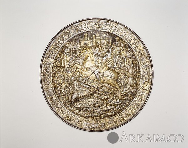 Щит изображающий Святого Георгия убивающего дракона, ок. 1560-1570 гг. Милан, Италия. Метрополитен-музей, Нью-Йорк