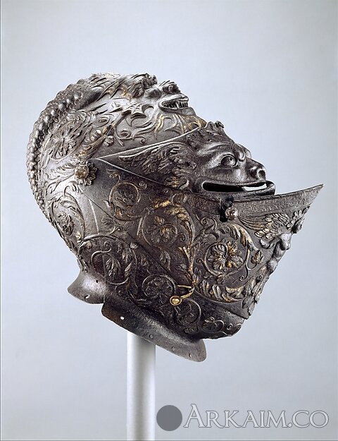 Закрытый шлем, изготовил Giovan Paolo Negroli (1513–1569), ок. 1540-1545 гг. Милан, Италия. Метрополитен-музей, Нью-Йорк