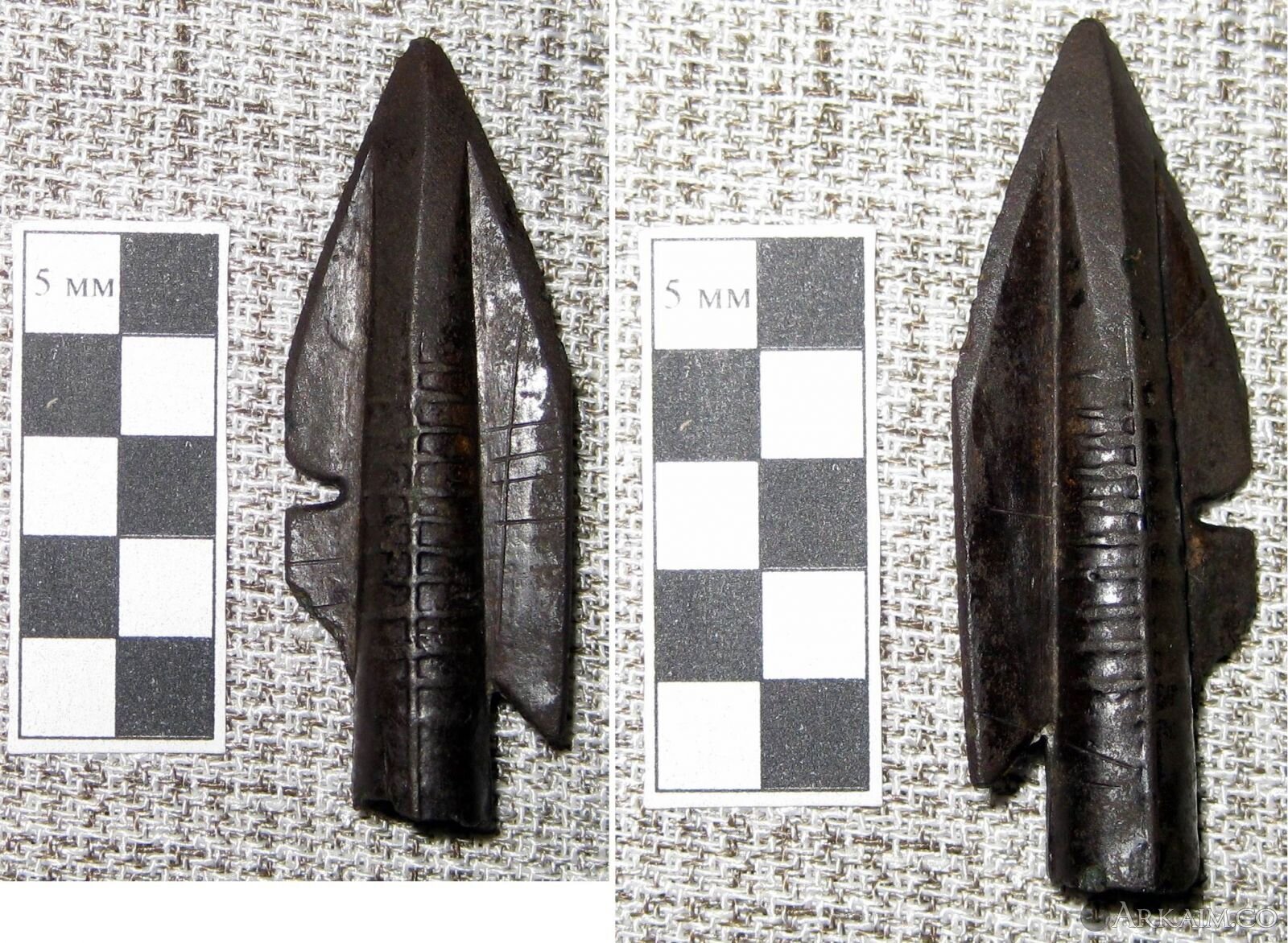 Наконечник черногоровского типа с тамгой "тельняшка" и графити