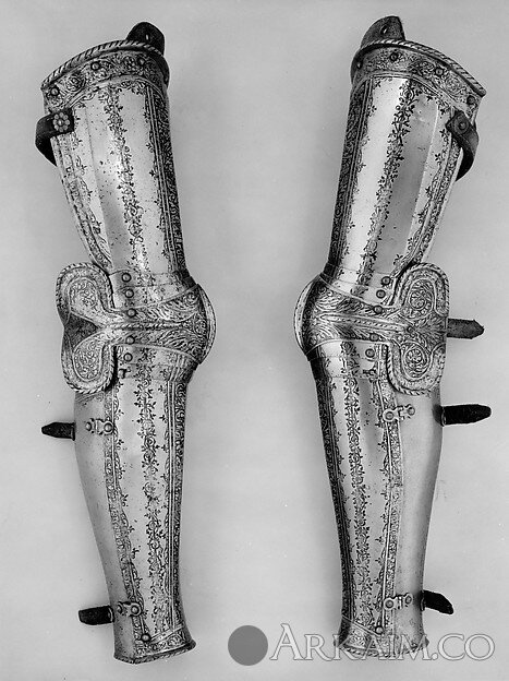 Поножи, ок. 1560 г. и позже (задняя пластина левой поножи изготовлена в нач. 20 в. Raymond Bartel). Германия. Метрополитен-музей, Нью-Йорк