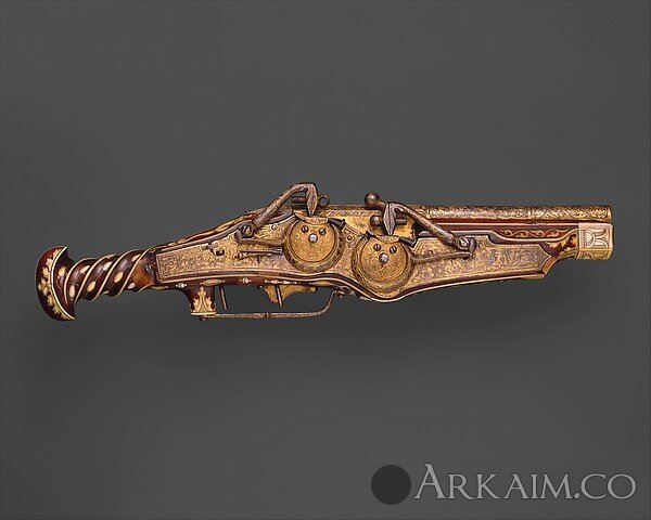 Двуствольный пистолет с колесцовым замком сделаный для императора Карла V (правил в 1519-56), ок. 1540-1545 гг. Мюнхен, Германия. Метрополитен-музей, Нью-Йорк