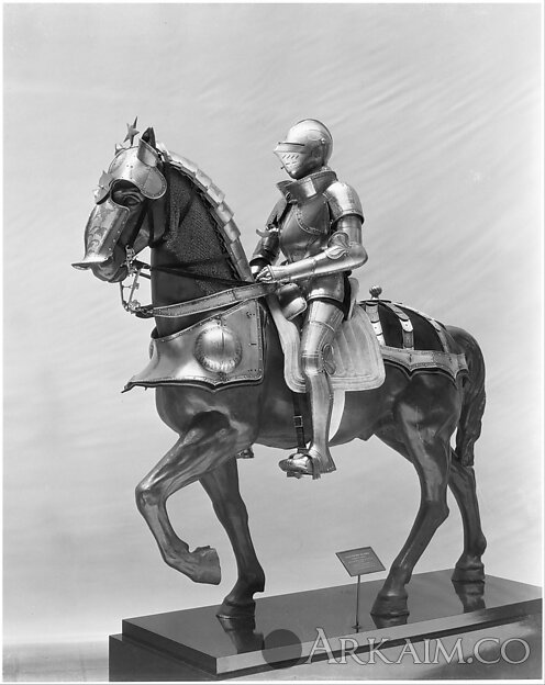 Конный доспех, вероятно барона Pankraz von Freyberg (1508–1565), изготовленный Wolfgang Grosschedel (1517–62), латы воина датируются 1535-1540 гг, конные латы - 1554 г. (седло более позднее). Германия. Метрополитен-музей, Нью-Йорк
