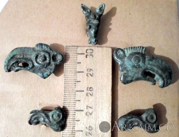 Сбруйные бляшки - голова грифона (вверху - голова лошади?). Северный Кавказ
