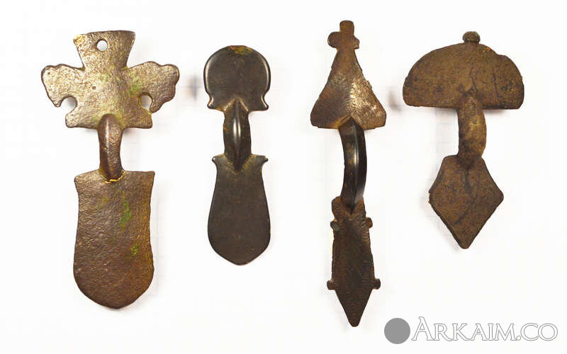 Фибулы пеньковской культуры. Размеры слева направо - 7,1 см; 5,7 см; 8 см; 5,6 см. Житомирская обл.