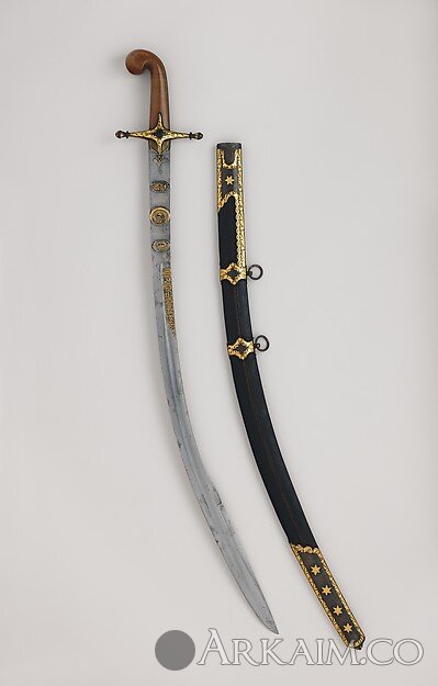 Килич, лезвие - кон. 18 - нач. 19 вв., рукоять и ножны - 19 в. Лезвие - Иран, Рукоять - Турция или Северная Африка. Метрополитен-музей, Нью-Йорк